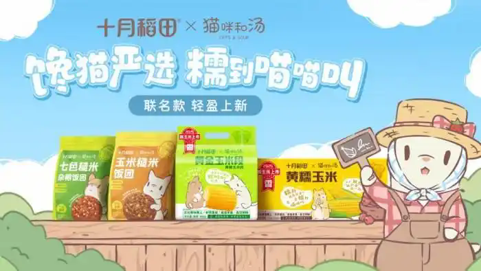 2025年新玉米上市期間,十月稻田不僅走進了機場,還走進了全球7000萬游戲玩家的手中。8月11日,十月稻田官宣與治愈系游戲《貓咪和湯》IP聯(lián)名,當糯到拉絲的黃金玉米成為貓咪嚴選的美食,次元壁就此被打破。