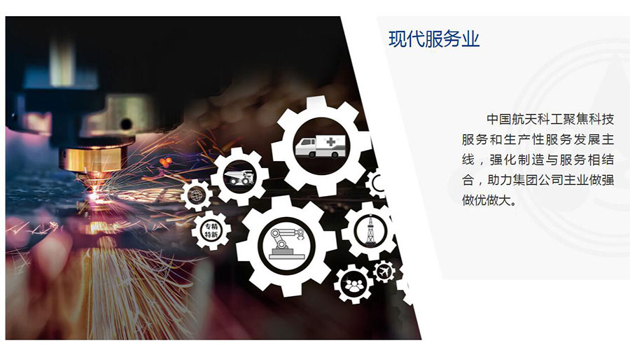 發揮自身資源稟賦和能力優勢,體現軍工技術服務溢出效應,圍繞主責主業創新發展國際化服務、工程服務、科技服務、生產性服務,促進集團公司現代化服務業體系化、專業化、市場化發展。