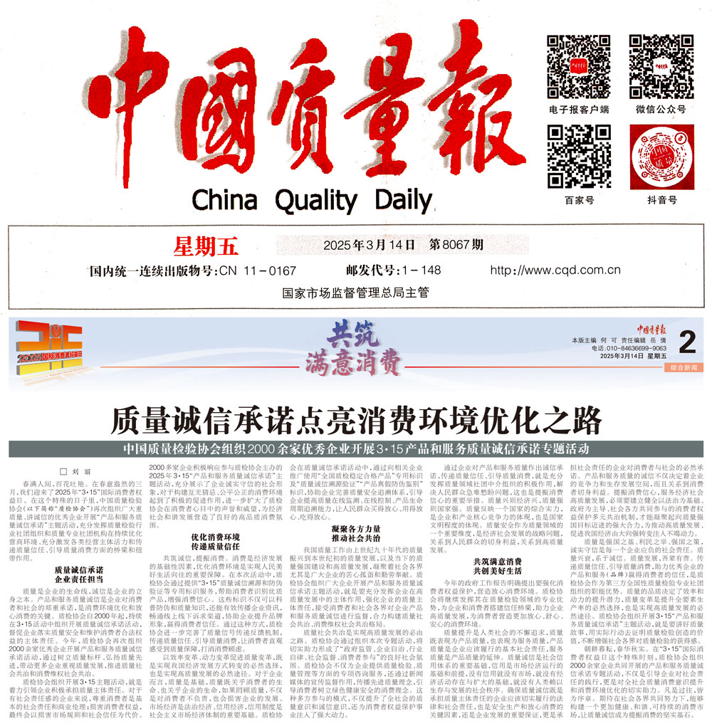 朝耕暮耘,春華秋實。在3·15國際消費者權益日這個特殊時刻,質檢協會組織2000余家企業共同開展的產品和服務質量誠信承諾主題活動,不僅是引導企業對社會責任的踐行,更是對全社會質量消費意識提升和消費環境優化的切實助力。凡是過往,皆為序章。期待在社會各界共同努力下,能夠構建一個更加健康、和諧、可持續的消費市場,讓質量誠信成為提振消費的堅實基石。
